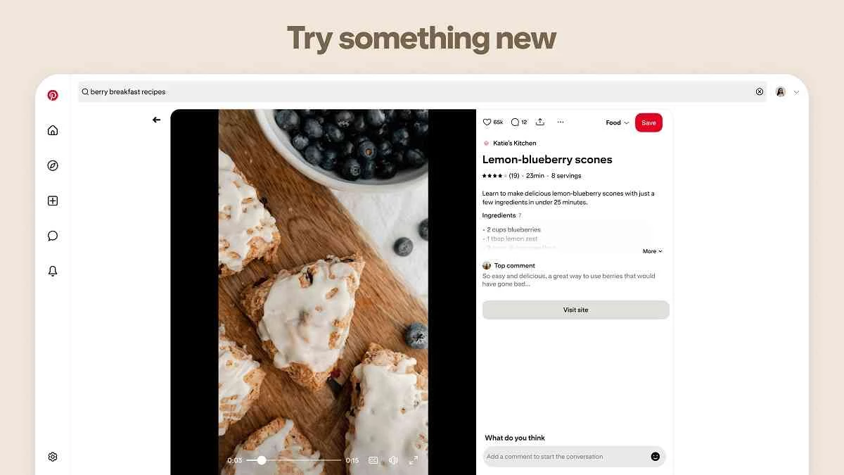 يُمكّن التطبيق، بدعم من خوارزمية توصية، المستخدمين من اكتشاف مجموعة واسعة من الدبابيس الجديدة التي تُناسب أذواقهم. يُفضّل التطبيق قسم الصور، لكن العديد من الدبابيس تُتيح فتح مقاطع الفيديو للوصول إلى أفكارك بشكل أفضل وأسرع.